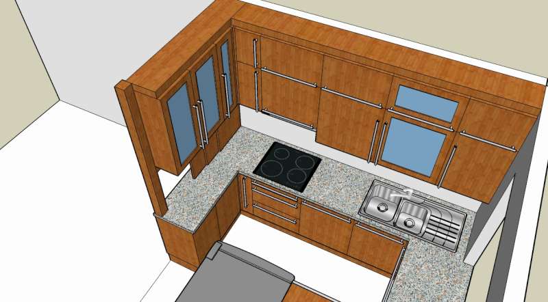 Tvoril jsem sam pomoci programu SketchUp (doporucuju, naprosto skvely, rychly a pochopi i laik ...). Kuchyn vyrabeli truhlari a vysla levneji nez od kuchynskych studii, muzu i poskytnout kontakt. Pokud bude zajem, muzu vyhrabat i nejake fotky, jak to vypada v realu. Za linkou mame sklo.