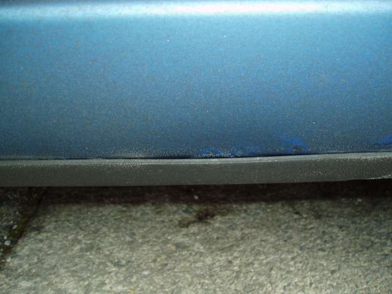 Přichycené je to šrouby zespodu pod prahem. Podle fotky to vypadá, že práh někdo možná i opravoval. Obvyklým poškozením prahu je najetí na překážku při odbočování. Letos v zimě mi manželka "spravila" pravý práh o hromadu zmrzlého sněhu :twisted: Práh mám lehce promáčklý a vzhledem k obtížnému přístupu na opravu bez použití invazivních metod to nechám tak. Je to jedno z nejblbějších míst na opravu. :bebng: