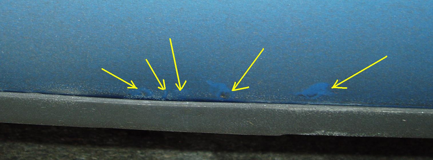 No, jednak je to plastový ochranný prvek, který je zespodu pod prahem přišroubován šrouby a za druhé, když si fotky zvětším na maximum, tak tam prostě vidím nějaké stopy jiného odstínu barvy a dle mého názoru tam někdo něco zatíral a to po nějaké opravě.