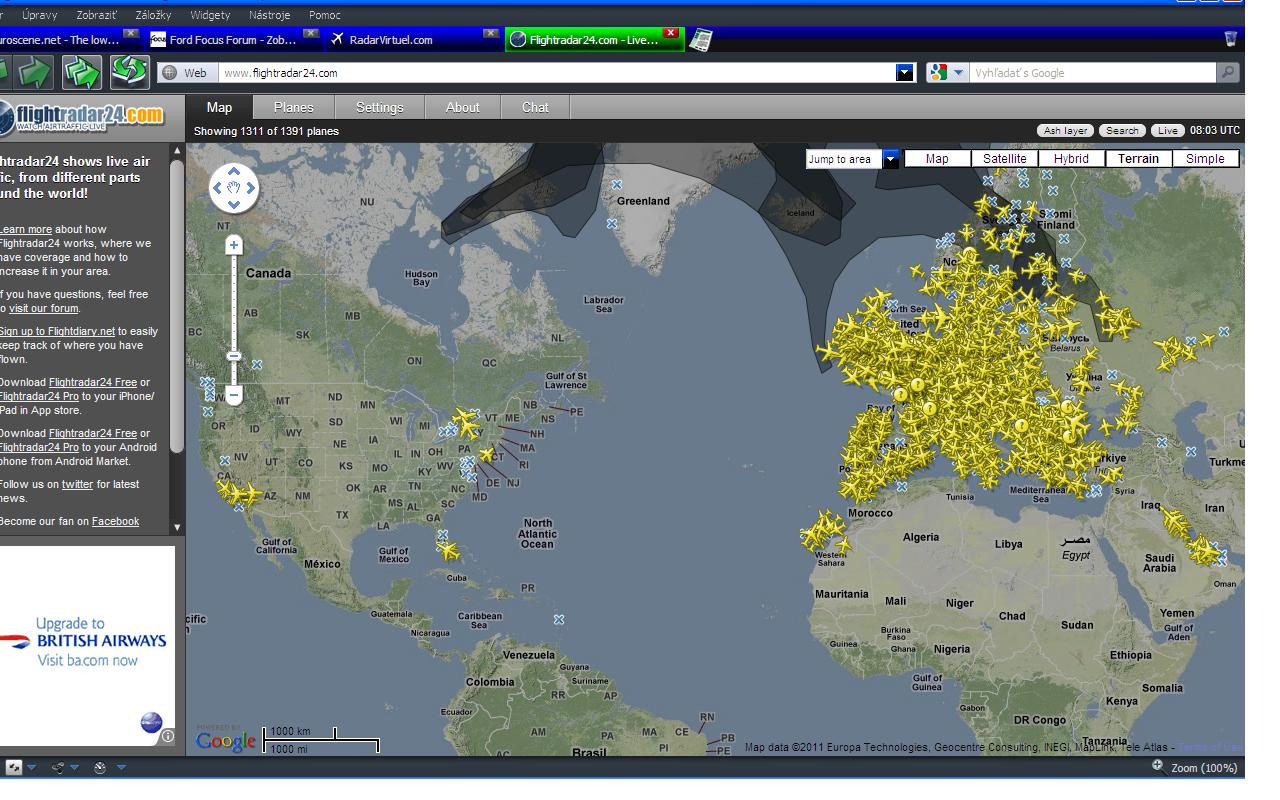 Mám takovej pocit že tohle je takový amatérský projekt a přispívají do toho nadšenci, takže tam nejsou všechna letadla. Loni tam zobrazovali i ten kouř z Islandské sopky. Ale jinak zajímavá mapka.