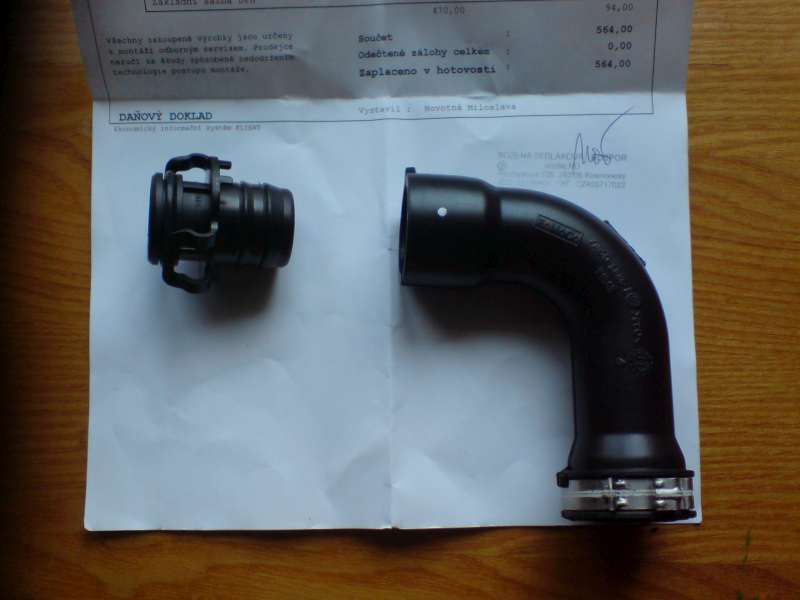 Tak vnesu do toho trochu jasno exisistuji 2 provedeni a to s kulatym filtrem pak se necha odbocka koupit zvlast origo ve fordu pod obednacim cislem 1673573 za cenu 564kc, pak je verze s hranatým filtrem a tam to prodavaji jako komplet za 2156kč