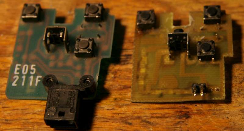 - 2x špatně spojený odpor s tlačítkem - přerušen spoj a správně zapojeno pomocí drátové propojky