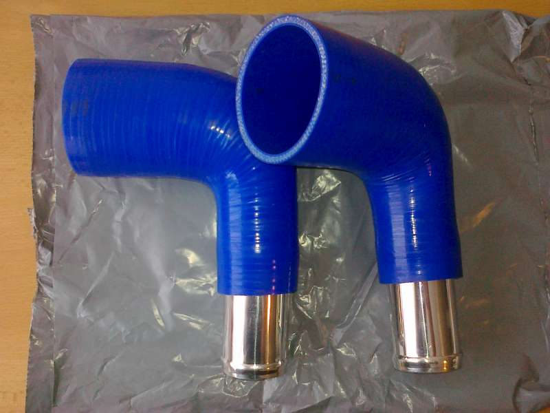 Vzal jsem tedy vývoj do svých rukou a ve středu objednal silikonové redukce na dříve nakoupené chladiče. Příští týden se to pokusím implantovat na auto. Náfuky a držáky už mi snad někdo navaří potom...