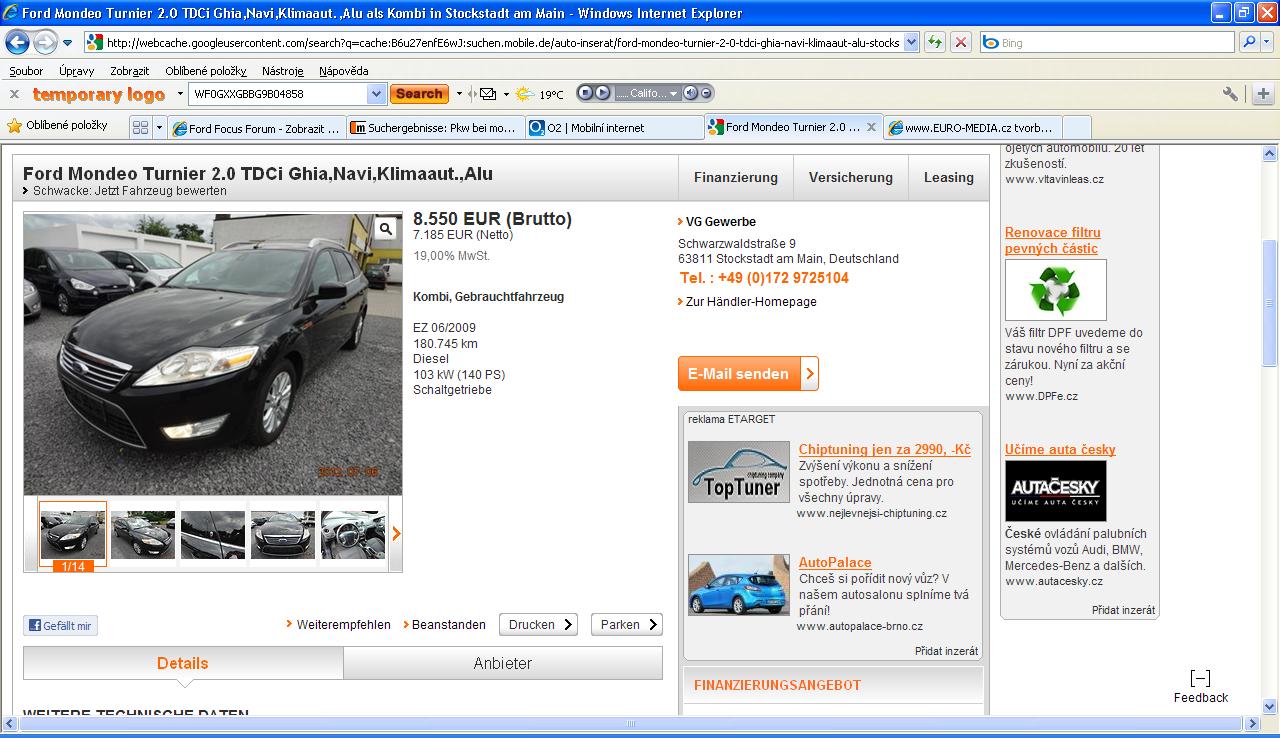 Když jsem dříve sháněl auto, tak jsem se dovolal přes inzerát na Focuse nějakému dovozci z Pardubic, že prý to auto stojí v bazaru Burda v Pardubicích, prý pro něj vozí ze zahraničí (uváděl to jako bůhvíjakou referenci a asi si myslel, že mě tím jako ohromí), takže to Mondeo může třeba pocházet taky od něj. Nevím jak to je přesně u tohodle Mondea, ale autobazar to pak prodá v komisi a když to pak člověk náhodou zjistí, tak bazarník může svatosvatě kroutit hlavou, že s tím nemá nic společného (on to nedovezl a nestočil), že to jen prodal v komisi co mu tam někdo jiný dal ...