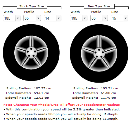 Zajímavá stránka, teď tam mám přesně ty základní 185/65/14, takže bych mohl přejít na 195/60/15 (koukal jsem do techničáku a mám to tam stejně). Díky