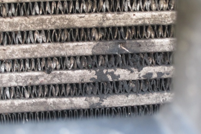 Tak vkladám slúbené fotky. Asi z nich ťažko rozoznať aká je tá diera velká, ono vyzerá že je dokonca upchatá, takže fakt neviem či toto môže spôsobiť stratu výkonu. Ale aspoň pekne vidno aký je celý zošrotovaný