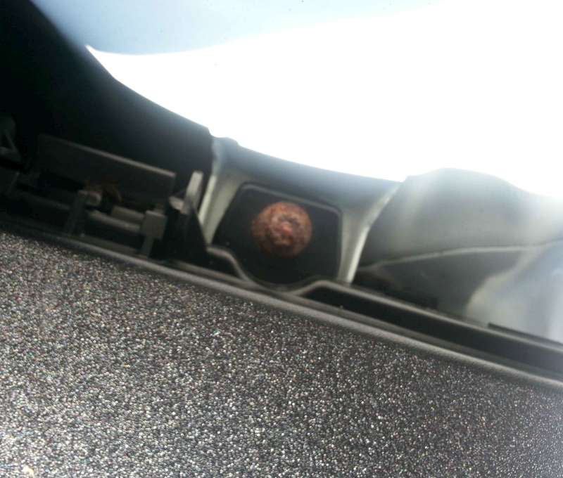 A pak ještě druhá věc. Pod vypínačem světel je na spodním krytu palubovky prolis (omlouvám se, nevím jak to odborně popsat), který je zespodu chycený šroubem. Šroub je pěkně ožužlaný (viz. foto). Co myslíte že tam dobývali?
