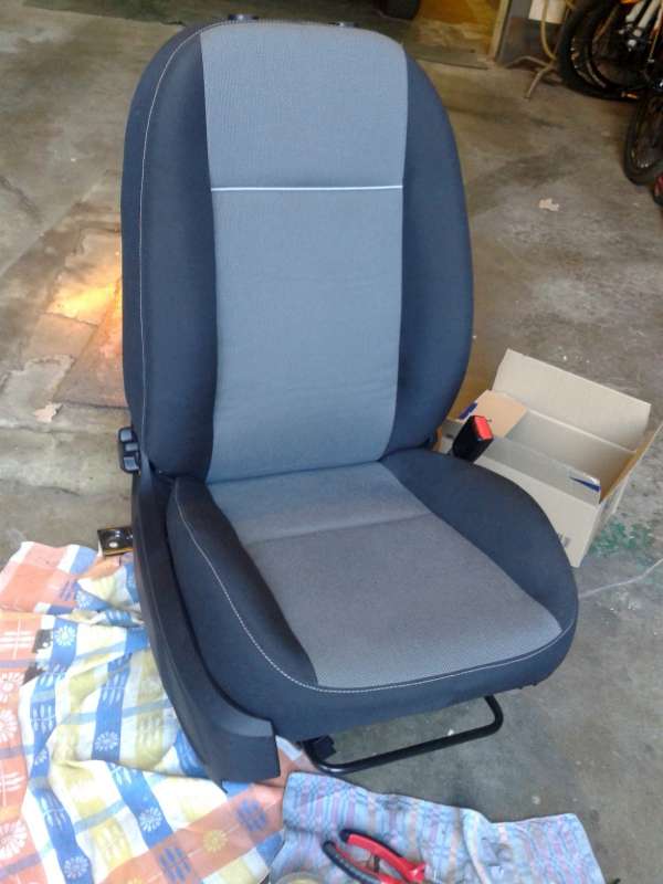 1) Vyndáme sedadlo z auta a uděláme si dostatek prostoru (nedokážu si představit dělat vše bez vymontování sedadel z auta, předevsím sundavání plastů). 2) Na těchto místech jsou 3 úchyty, které drží plast (na druhé, snažší straně, jsou pouze 2). Kolečko pro sklon sedadla silou k sobě vysuneme. 3) Zde jsou vidět úchyty. Červěně jsou označeny místa kde drží potah sedadla. Ten se musí silou vycvaknout. Žlutě je označený držák potahu se kterým je největší problém (na každé straně 2). Jde opravdu špatně vycvaknout a nejspíš ho pří demontáži poškodíte (nikaj to ovšem nevadí výsledné práci, není nic poznat) 4) Vycvaknutí potahu zespodu sedadla (provádí se asi na 3 místech) 5) Sundavání potahu 6) Potah je přidělaný k sedadlu kovovými kroužky. Zde se nebojte použít štípačky a kroužky přecvaknout (jinak to opravdu nejde, pokud u toho nechcete strávit týden) 7) Přestřihat stačí jen jedna strana a střed (pod zbytek už potah zasuneme rukou)