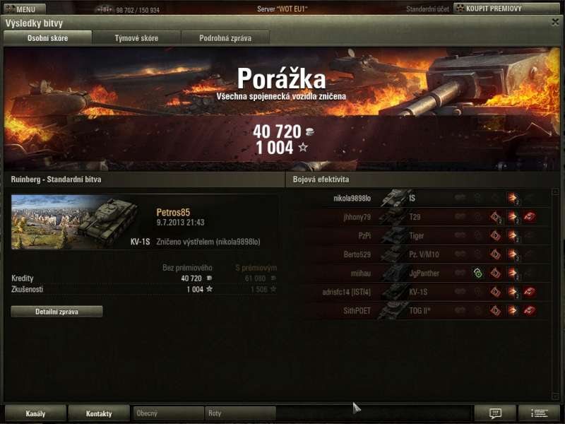 Jseš dobrej.DAveDog je dobrej hráč párkrát jsem ho potkal jako protihráče,já ho mám zafiksovanýho protože ho znám tady od fora clubu. Jinak jsem se vrátil k tanku is,měl jsem t-43 a byl na houby měl slabej kanon 85mm.Ale stále tu hru žeru...