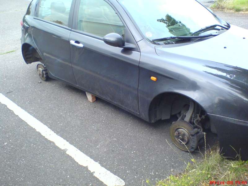 Nastesti je po odsroubovani jednoho kola vyrusil soused v prizemi, takze krome toho, ze to odsroubovali, tak nic nestacili odnest