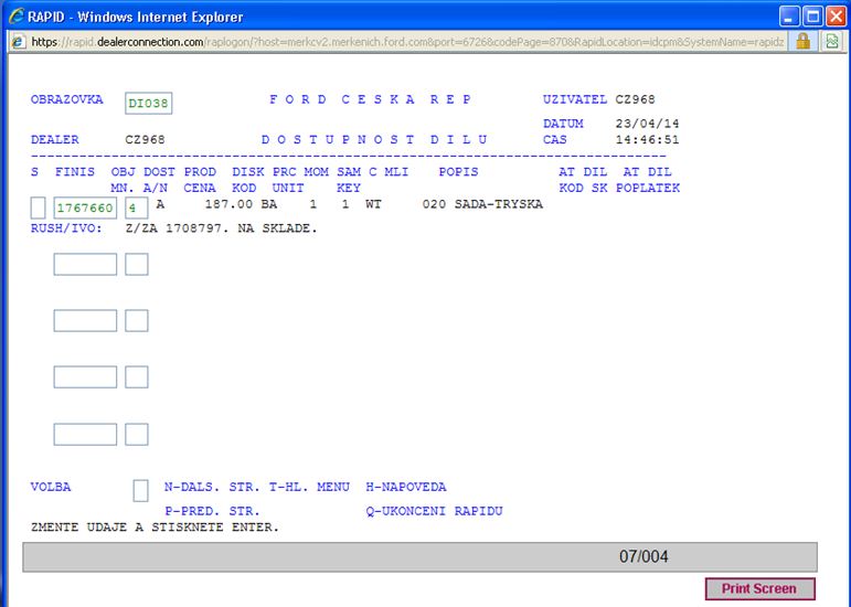 Přitom na http://www.fordservice.cz je dle finiše 1767660 dohledatelný s cenou k 7.4.2014