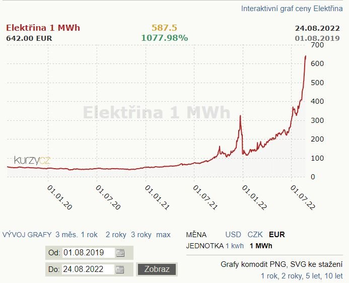 Včera el. nakukovala někam k 800€/MWh, bude to ještě asi hodně zajímavý... příští rok bude asi "záživnej".Karel2 píše: 25.08.2022 06:11 Konecne z neho vypadlo neco rozumneho, reseni na evropske urovni.