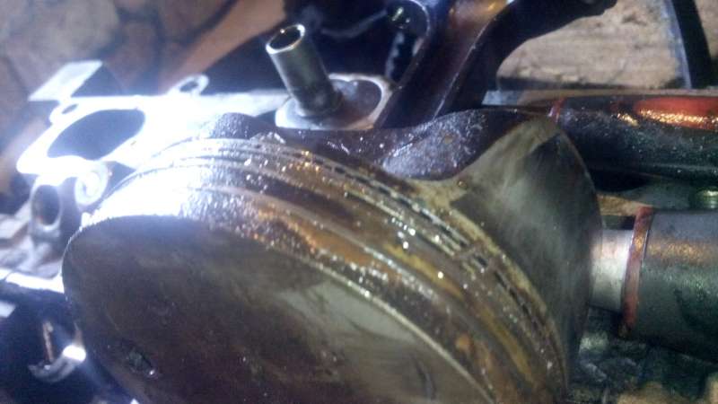 Z dlouhé chvíle jsem se pustil do rozebírání motoru, který hlodal 5L oleje na 1000km. Po vytažení jednoho pístu (na všechny jsem neměl čas) jsem téměř nenašel kruhy. Byly tam, ale zapečené v pístu. Stírací byl trošku problém vytáhnout.