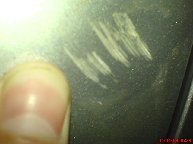 nie je to moc dobre na tej fotke vidiet (neostra) ale pride mi to ako skrabanec od bielehou auta (alebo je to poskrabane az po spodnu vrstvu laku?)