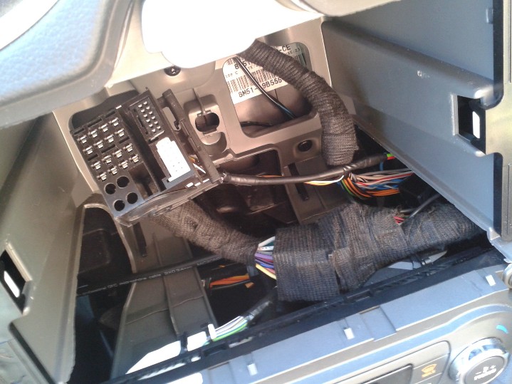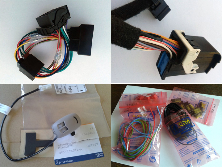 2) Seženeme si BT Modul (investice cca 500 Kč) s 54pin konektorem, mikrofon na A-sloupek (originál má finis 1363462), držák modulu + šroub (nově Ford dodává náhradu držáku pod finishem 1353218, šroub 1231391), cca 3 metry mikrofonového kabelu a několik metrů 1mm kabelu (případně několik samořezných rychlospojek, izolační pásku apod..)