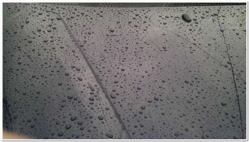 Přivolal jsem si na dnešek déšť, abych mohl porovnat výdrž čtyř vosků čtvrtý den po aplikaci
