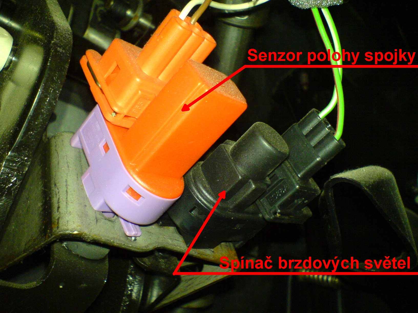 Tak jsem testoval funkčnost snímače spojkového pedálu: při sešlápnutí spíná okruh, ale jestli je signál dostane až k řitící jednotce, to nevím jak zjistit.