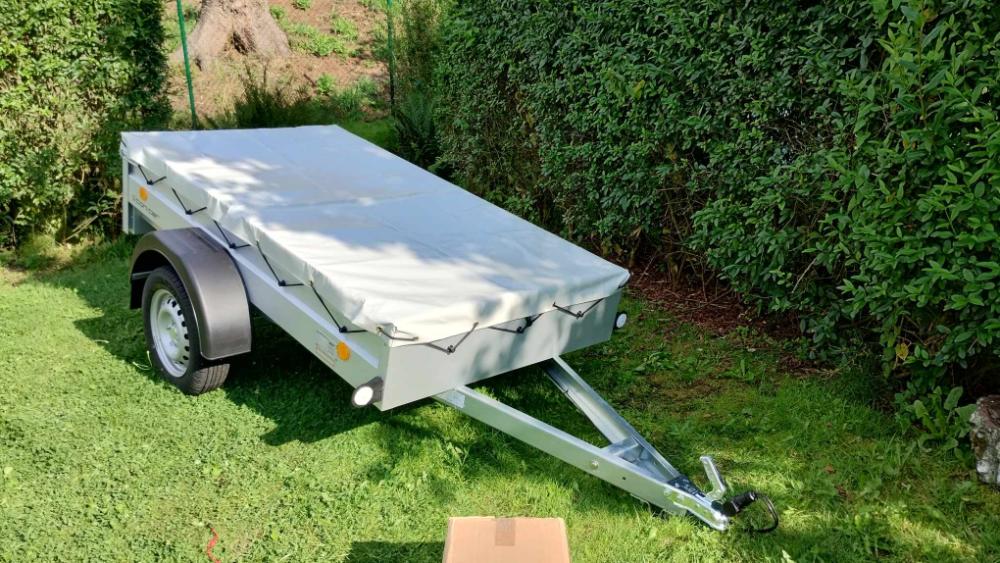 Včera jsem jo přivezl z Prahy, hned jsem na něj nahodil plachtu, výztuhu oje, 13pin zástrčku a záchytný oka ještě do prostred