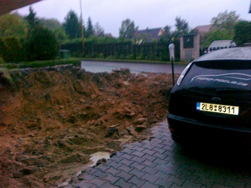 to je muj pozemek, tam byla vyvysena zahradka a teras + schody do baraku, ktery jsou pryc a prijdou tam novy, zbytek prijde vydlazdit, at ma auto vic prostoru