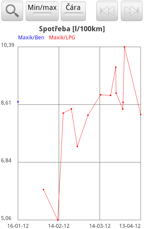 Jelikož asi bereme pokaždé jinde, nelze to úplně přesně spočíst. Jinak zatím v plynu ujeto necelých 6k kilometrů a zatím spokojenost. Mám italský systém lovato, nádrž místo rezervy. Myslím, jakékoli hodnoty blížící se 8l/100km jsou super.