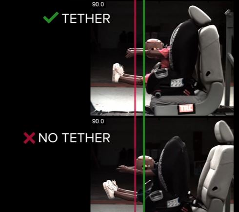 Ideální z hlediska obsluhy je TopTether u sedanu Přijatelně ještě na zadní straně opěradla: Pro zajímavost - našel jsem srovnání sedačky přikotvené s použitím top tether a bez. v USA je povinně v autech dokonce od roku 2001, nezávisle na Isofix a doporučuje se jej používat ať už s pásem a nebo Isofixem.