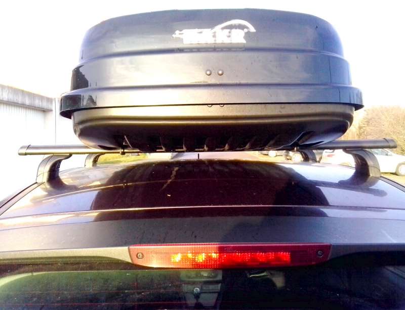 Další zajímavé zjištění je, že samotné příčníky vydávají už od 70km/h takové temné hučení. Po naložení boxu tohle zmizí a je slyšet takový vyšší šum, ale ne moc hlasitý. (píše se o tom i na jiných fórech a dost záležní na aerodynamice auta) Do těch 130 km/h se o tom boxu (kromě lehce zvýšené spotřeby) v podstatě neví. Po absolvování prvních 100 km jsem dotahoval šrouby na patkách, byly trochu povolené, pak už to drželo celou cestu.