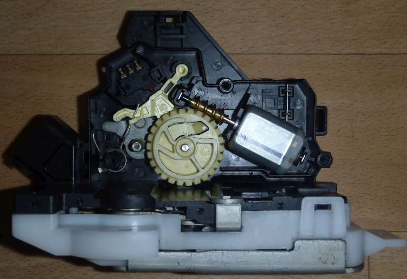 Zakousl se mi zámek v LZ dveřích na Mondeu III kombík - nešel zamknout elektricky ani páčkou. Podle vašich návodů jsem rozebral, takže pár čerstvých zkušeností na oplátku - je to stejné jako na předních dveřích - musí jít ven i s klikou. Šroubky na klice nevyndávat, stačí povolit, při povolování toho co je pod zátkou je potřeba držet kliku úplně vytaženou jako při otevírání dveří, šroubek pak zastrčí tyčinku do dírky a mechanismus zůstane zablokovaný v otevřené poloze tak aby se to dalo složit - dá se to ale udělat i potom. Zámek byl plný skleněných střepů - památka na zloděje co rozbil okýnko, po rozhýbání a vyfoukání je v pohodě. Rozebral jsem jenom mechanismus s motorkem - 3 torxy ven, 2 packy nahoře a pak jsou ještě výstupky na tom krytu dole - je to snad vidět na fotce, je třeba je nadzvednout šroubovákem. Všechno co je uvnitř krom mikrospínače se dá bez násilí vyndat včetně motorku, jenom pozor na malé plíšky na koncích hřídelky. Při montáži kliky musí vnitřní plast zacvaknout výstupky do plechu, když se to tam jenom strčí, vnější část kliky odstává.