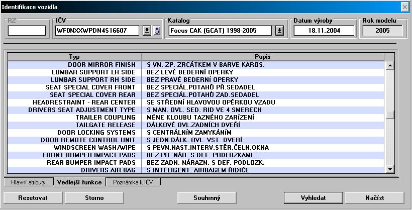 Dekódování VIN - čti důležité info str. 1, body 1 až 8 !