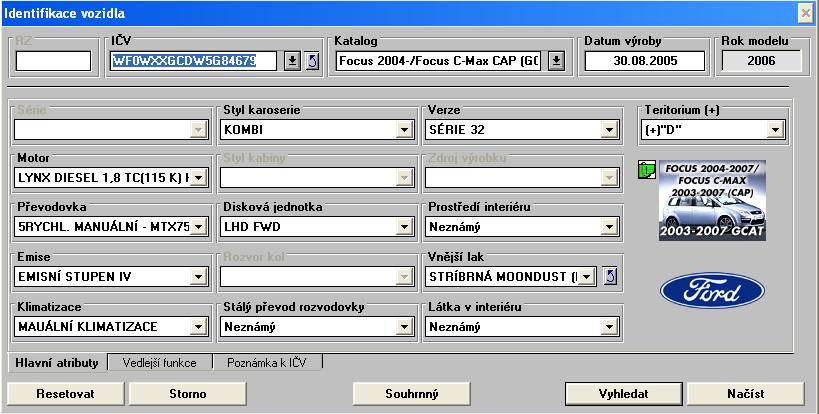 Focus 2004-/Focus C-MAX 2003-, (+)"SK", 1.6L Zetec-S PFI VCT (115PS) Sigma, 5rychl. manuální - B5/IB5, Emisní stupen IV, Mauální Klimatizace, 5 Dveřový Sedan, LHD FWD, Série 15, Černá Panther (met), Police/ Dark Flint