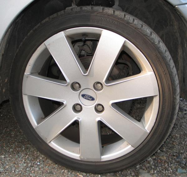 su to 7 paprskove (viz foto) alu kola, znacky RONAL (v strede je znacka FORDu), su trochu skrabnute (kazda). Momentalne su obute na letnych gumach: