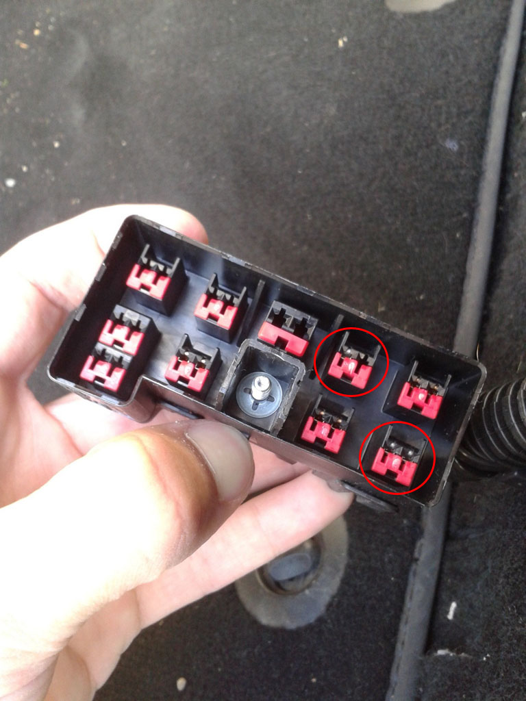 Konektory pod sedačkou a pojistky mám naštestí přesně jako v návodu (modelový rok 2010) - v příloze posílám obrázky.