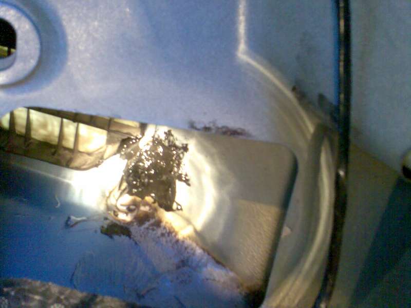Takže vše je přiděláno a téměř utěsněno, do auta už voda neteče. Použil jsem jakousi tmelovou gumu. Sice to schne 2 hodiny :| ... ale výsledek za to stojí.