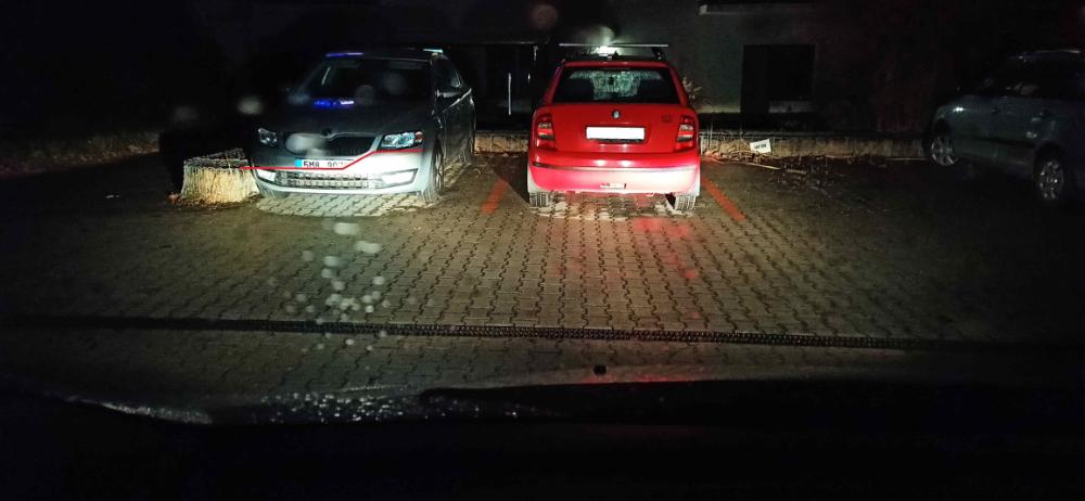 Stojím přímo naproti červenému autu, ale lom od levého světla je na levém autě (vyznačeno červenou čárou) (kola jsou natočena rovně).