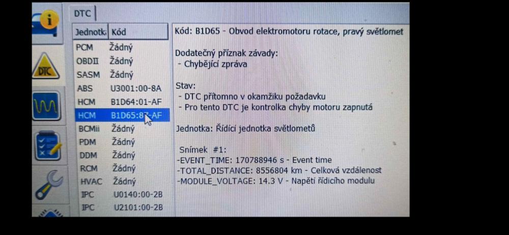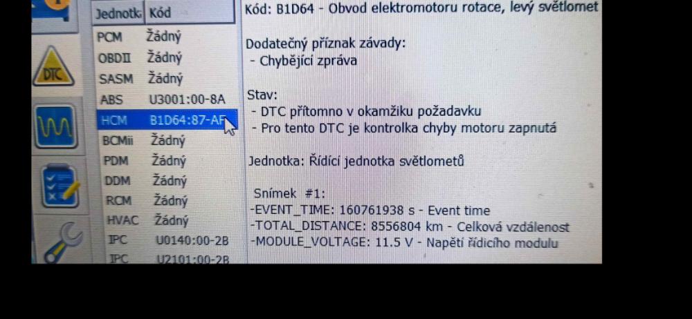 A vidím jeden rozdíl, při nastartovaním motoru, je u levého světla stále +- 11,5 V u řídícího modulu (pravé při nastartovaném motoru má 14,3 V)