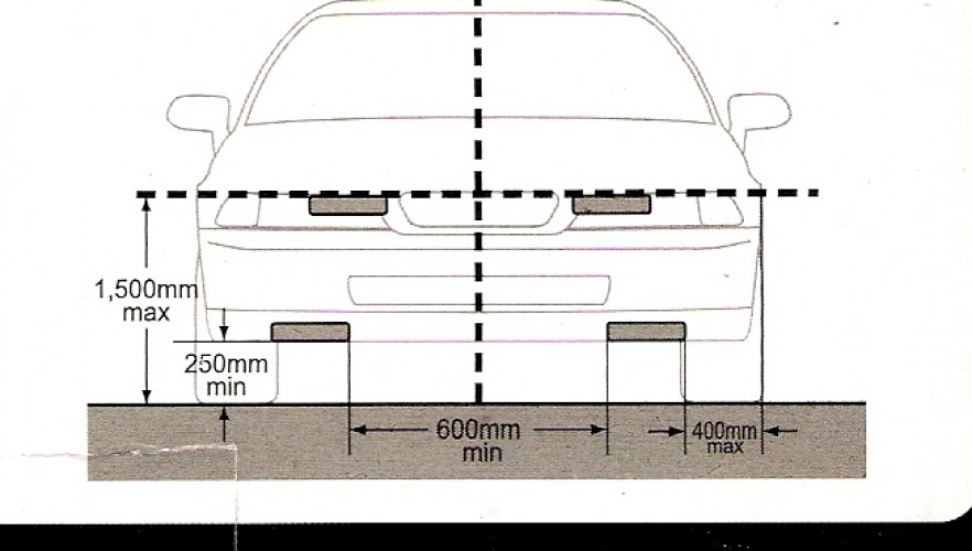 No já nevím přesně, ale rozměr od bokú je 40cm max a todle je rozhodně méně. Od země je to taky víc jak 25cm tak nevím jaký rozměr myslíte. Čím víc ke kraji, tím líp. A Octávky to mají na stejném místě, kdyby to nesedělo rozměrama tak by to asi neměly homologované.