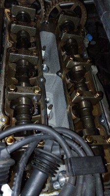 Taky byla pakárna sundat kryt vačkových hřídelí – jeden šroub mi tam držel vpravo vzadu - nějaký kus plechu s kabely, nanic přístup, musel jsme zespoda povolat...