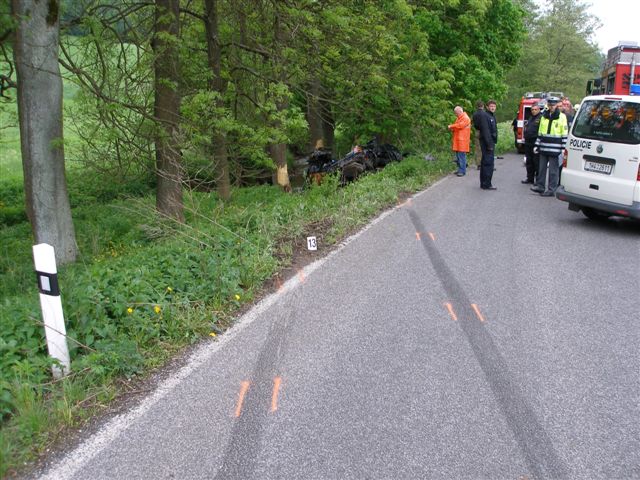 Včerejší (20.5) nehoda vozidla Ford Scorpio. Bohužel čtyři mrtví a jeden těžce zraněný.