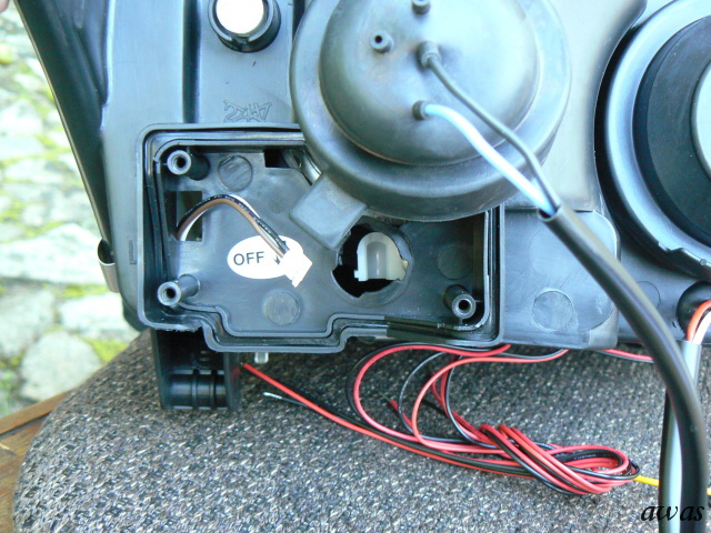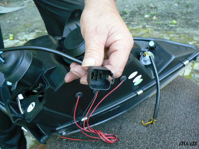 No takhle už vypadají nová světlaMotorek do nového světla už jde umístit naprosto pohodově.Jediné co je potřeba pájet a drátkovat jsou andělské oči,diody ve středu světla a blikny,ty původní jsem zatím nechal zapojené jen udělal odbočku zatím nevím jestli je zachovám či ne.Doporučuju koupit smrštovací bužírku aby svazky byly jako od profíků.Tomu kdo nemá zkušenosti s pájením-nebojte se použít hodně kalafuny hlavně nepájet na sucho.Černé drátky jdou na kostru červené ke konektoru na parkovačky tj pin č.3.Jen podotýkám,že pájet budete v pohodě se světlama venku,jakmile už jsou namontována není pro to místo.Blikny jsem napájel na přívodní kablíky u origo blinkrů taky ještě před montáží světel.Světla mi přišla i s žárovkami kdo si chce dát lepší svoje nechť to udělá teď po namontování je to "malinko" horší místa je málo.Po pájení následuje montáž.Problém byl v dodaných těsnících gumách,protože se jim nechtělo přilepit se,hlavně boční.Přitlačil jsem při utahování světlo k blatníku a guma docela drží.V nejhorším to vyřeší trocha silikonu.Jinak světla sedi velice pěkně.
