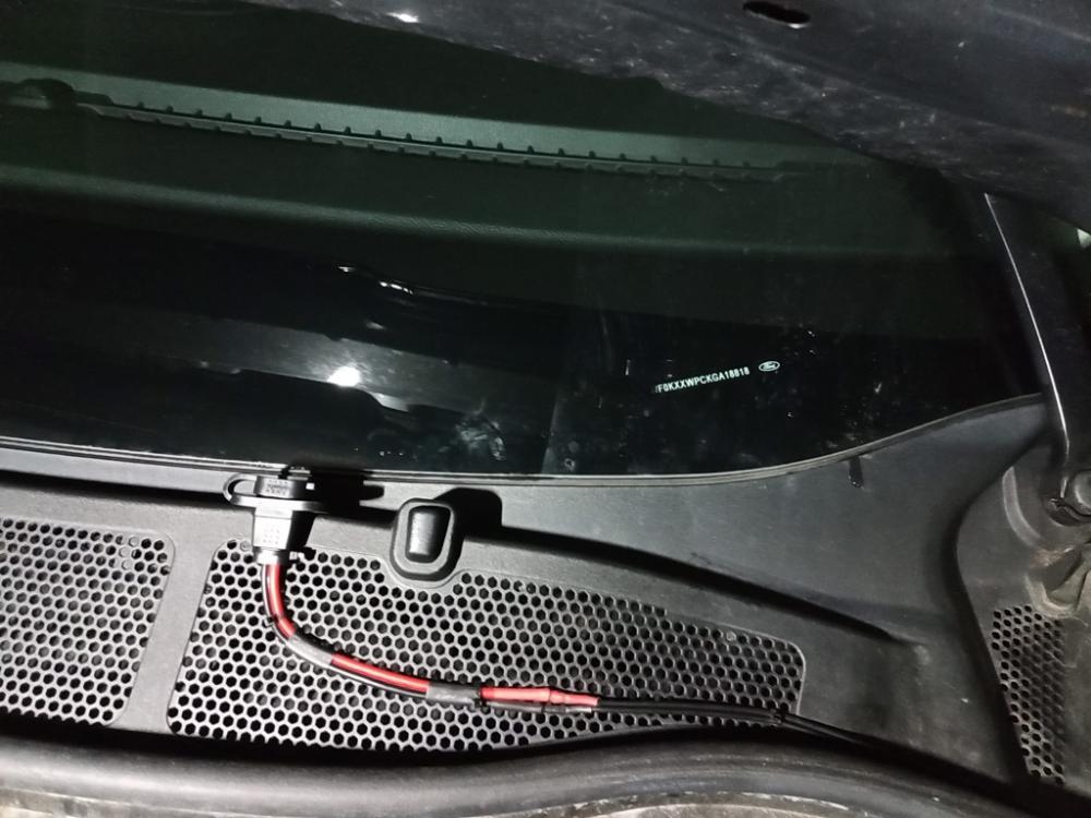 Konektor je schován pod hranou kapoty, takže na něj neprší a je schován před přímím sluncem.