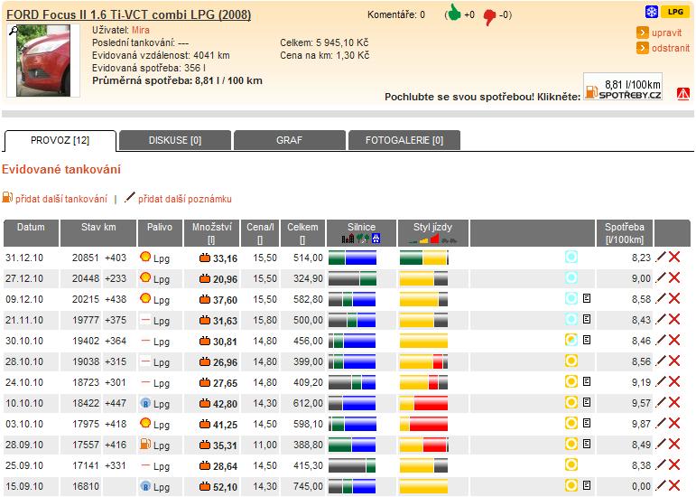 MH30: screen je ze spotřeby.cz, ale v podpisu mám taky spritmonitor, ale bez zápisu tankování N95. díval jsem se na to tvé tankování a asi to tankování benzínu taky dopíšu. zatím si dávám jen poznámku k tankování LPG. no spočítal jsem to orientačně na nějakých 0,6l/100km po ujetí cca 4420 km