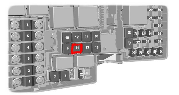 F11 je v pojistkové skříni v motorovém prostoru pod kapotou neboli hauBnou :)