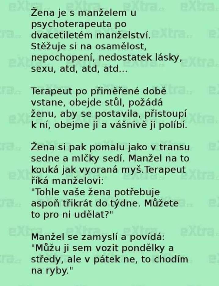 "Ježíšmarjá, vy jste ale kráva, to jsou nápady, vždyť přeci vidíte, že nemám nohy! No to jsem ještě neviděl,