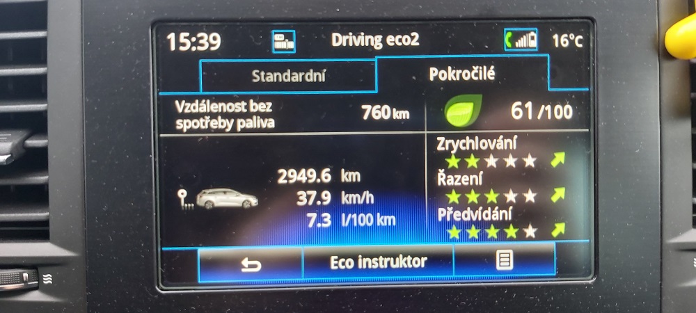 Mám Megane IV GrandTour, 1,33Tce, 85kw, 115k.. Najeto něco přes 4 tisíce a spotřebu to říká 7,3. Ale jezdim z 90% město.. PREJ by to mělo spadnout ale kdybych řadil podle toho, co to radí, tak jezdim od 40 na šestku.