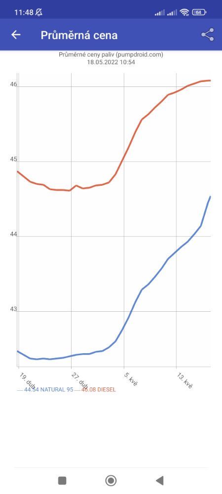 Už to zase letí nahoru.V pondělí jsem ještě bral naftu a benzín za 42,90,-