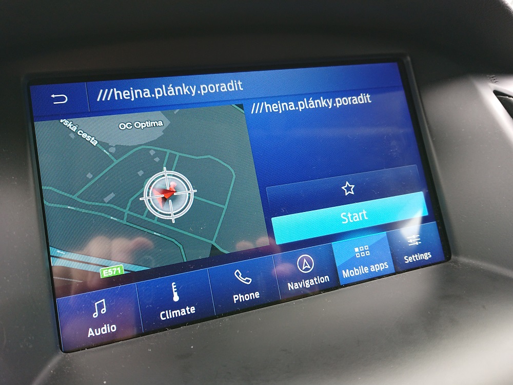 Inac skusal som novu mobinu aplikaciu What3Words, pomocou ktorej vie SYNC3 najst hociake miesto na svete na zaklade troch nahodnych slov. Vyhodu vidim pri malych dedinach a odlahlych miestach, kde SYNC nema presnu databazu cisel domov a pod. Je nutne si ale vopred pozriet danu trojslovnu kombinaciu na ich mape: https://map.what3words.com/