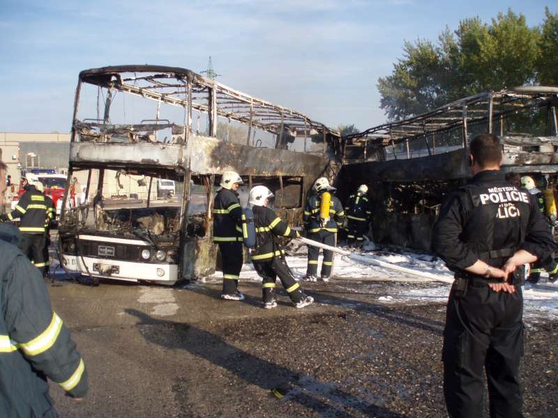 Včerejší závěr ranní směny - požár autobusů v Litvínově