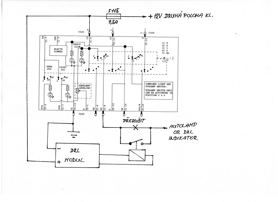 Tak odskoušeno a funguje to.V poloze AUTO světla spínají až po nastartování,ostatní polohy zůstaly