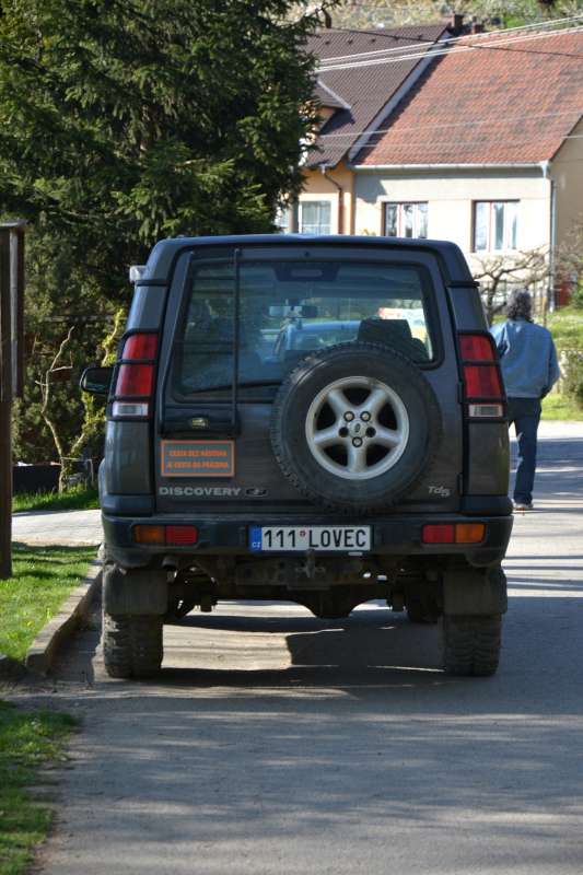 Vypadá to debilně. Já jsem zase v Jedovnicích potkal 111 LOVEC. Terénní Land Rover.
