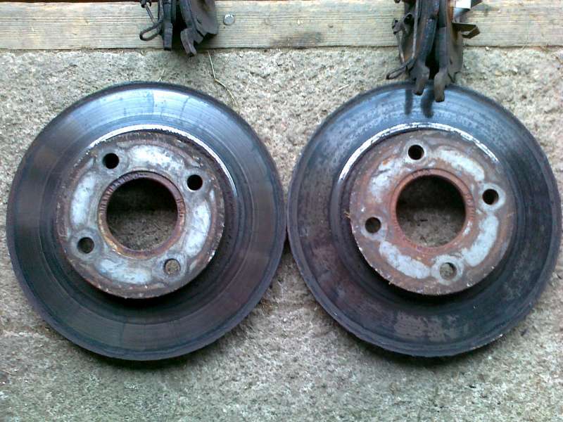 Blíží se dovolená, tak jsem měnil přední destičky a kotouče - viz foto. Zadní jsem měnil loni- byly horší než přední - úplně "shnilé". Vozím děti, takže žádná divočina.