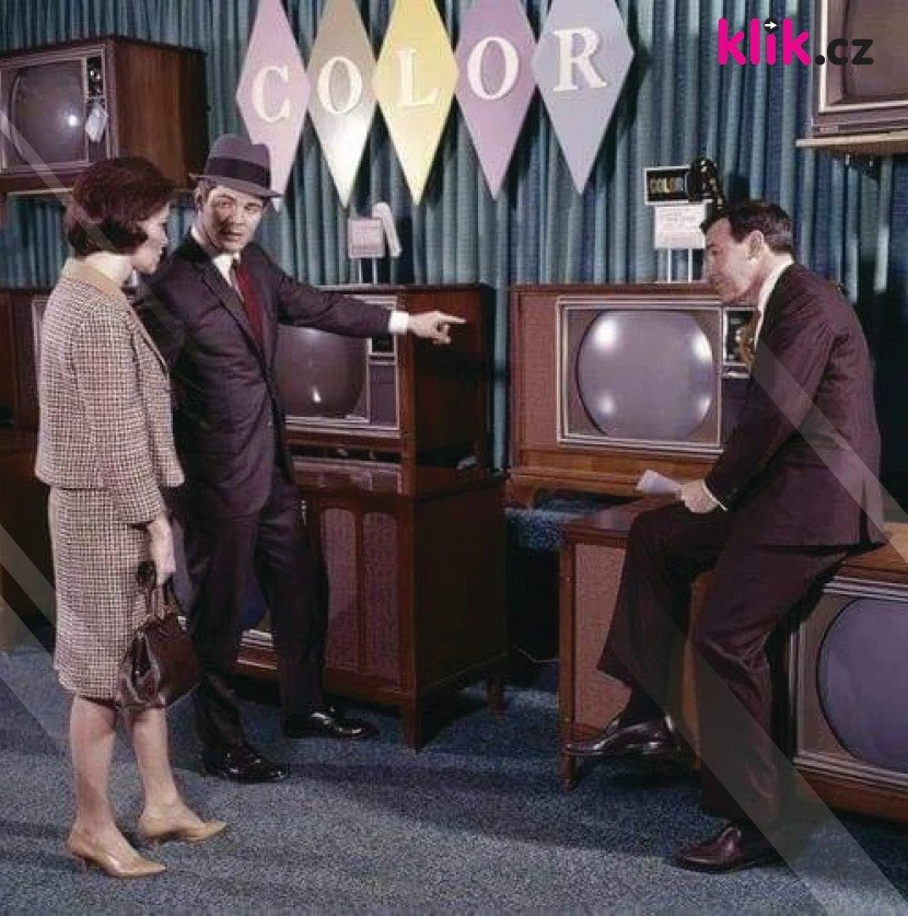 My měli,,tuším cca 1962-3 roce tel. Ametyst. Prodávalo se takové duhové sklo, které se dalo před obrazovku, a hned byly " barvy ". Sice strom byl červenej, lidi zelený, ale bylo to " barevný ".